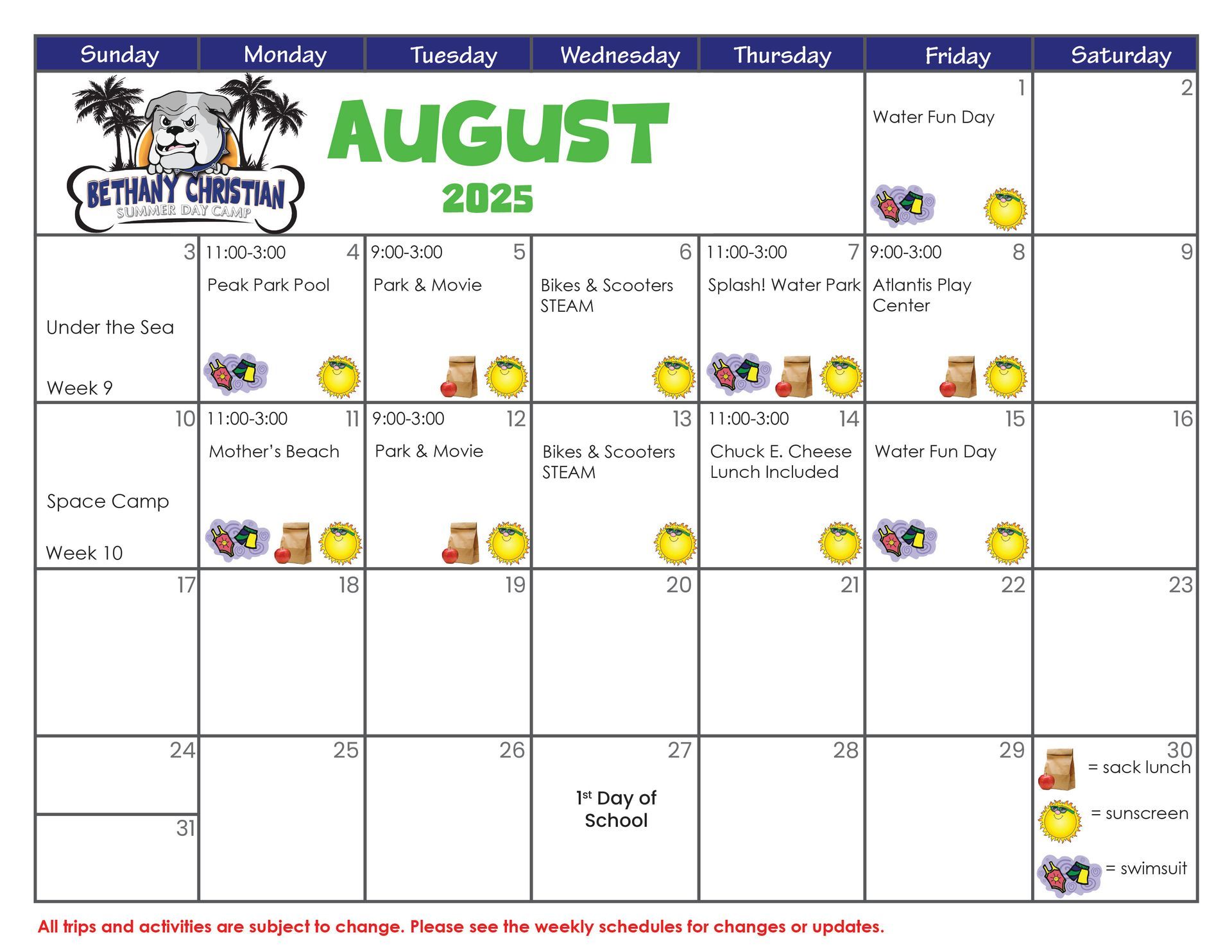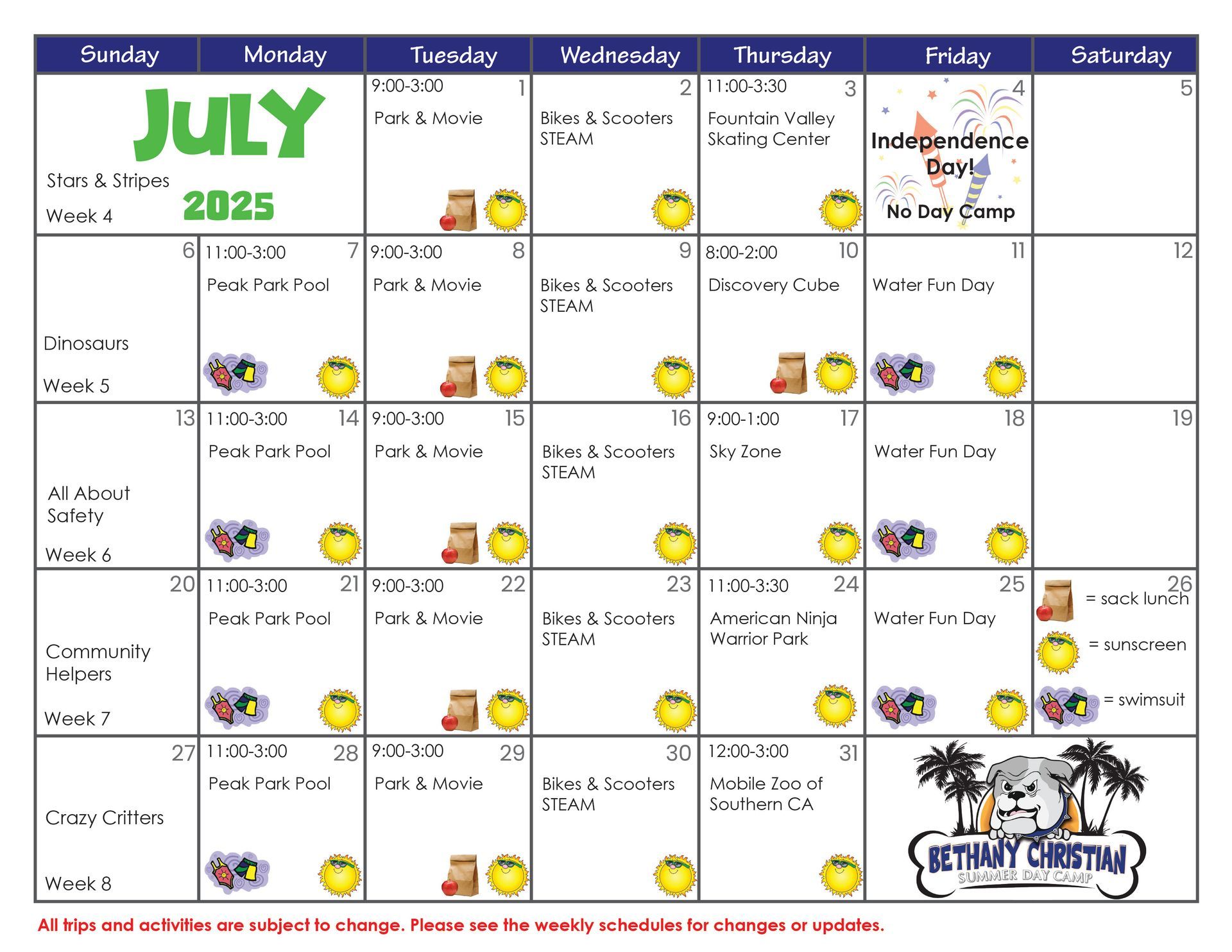 All trips and activities are subject to change. Please see the weekly calendars for all updates.